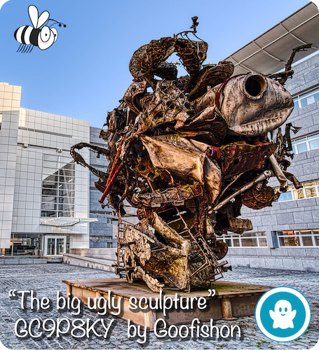 - Find the four digit number hidden in the sculpture (9XXX). It is at the back, about 2.5m high and there's a spoiler image you can use.