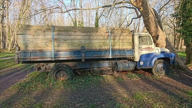Le camion en fuite qui a fini dans un arbre.