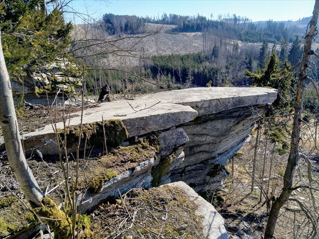 Při potulce po zdejších končinách jsme se ženou objevili zajímavý skalní útvar, který nám připomněl miniaturní verzi skály Trolltunga, v norštině tedy "Trollí jazyk". Keš je nahoře na skále, užijte si výhled do krajiny.