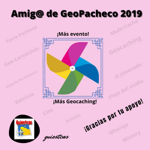 GeoPacheco event celebrates another year and to thank all the support you give us during these days of search and coexistence we wanted to pay tribute to you by dedicating a new cache to each one of you. Yes! To each and every one of you! Because in Geo Pacheco we want you to live unique experiences and what more unique than to sign "your own cache"?
