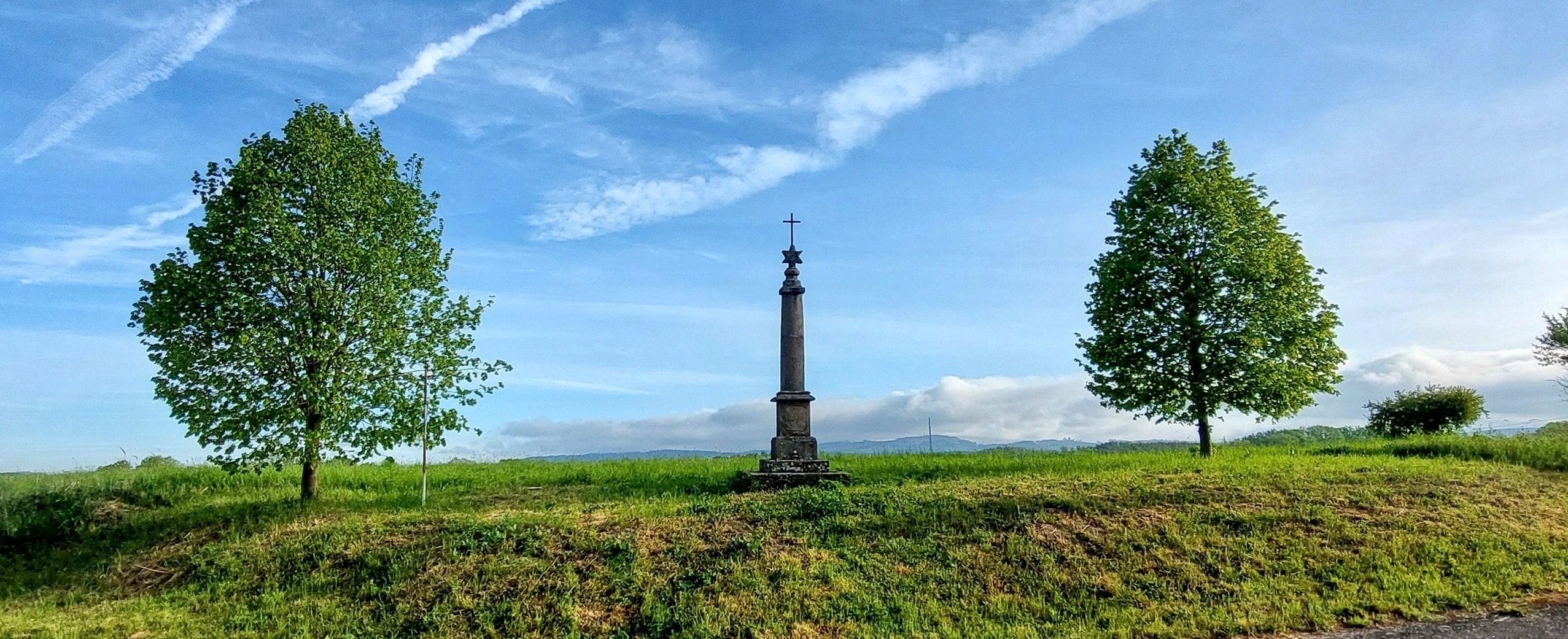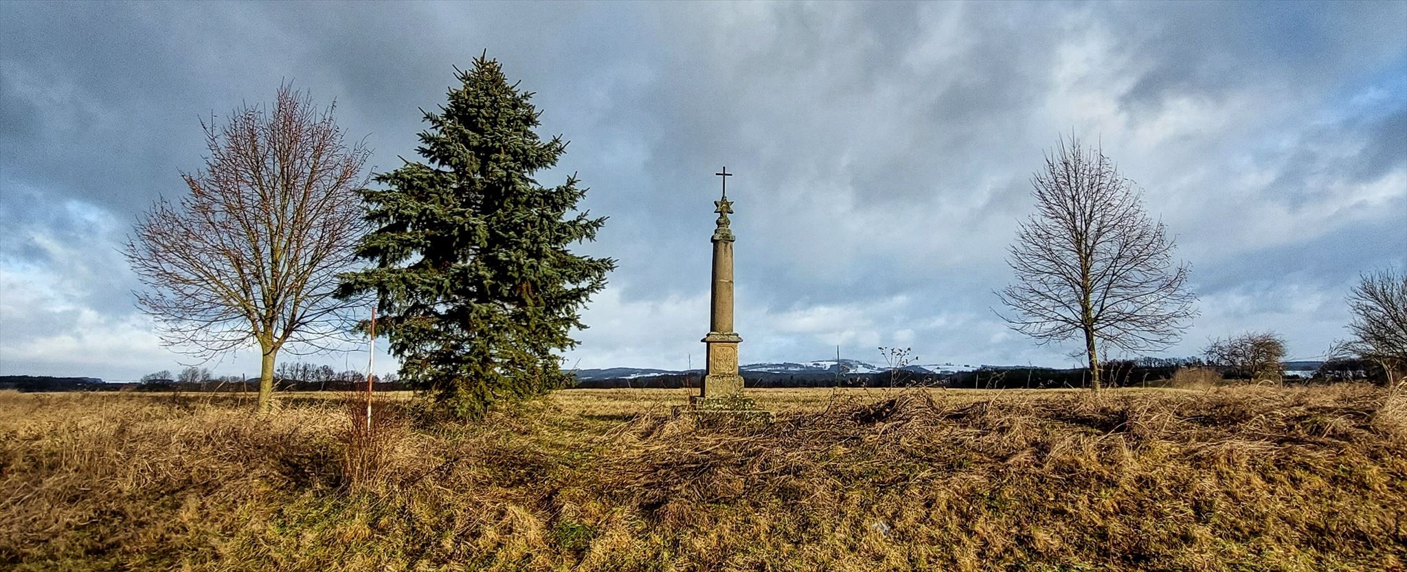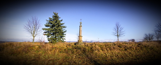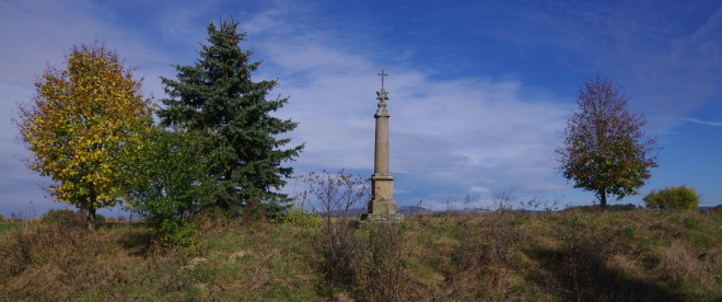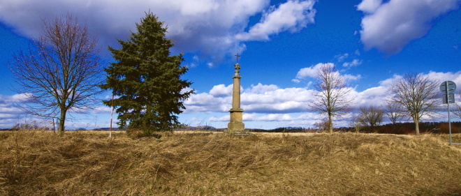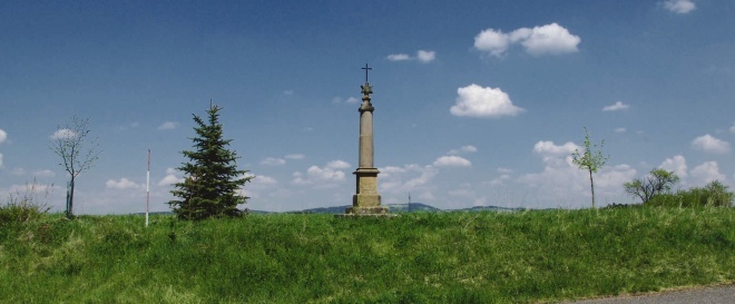 stojí na křižovatce staré hořické silnice a odbočky k Červené Třemešné. Na jeho vrcholku je šesticípá hvězda se zvětralým hierogramem MARIA a železný křížek. Lhota uvádí, že kříž dal postavit v r. 1809 miletínský purkrabí Niklas. (V popisu ho však omylem zaměnil s křížem, který stával severněji, na Drážkách). Existuje však rovněž jiná pověst o jeho vzniku - podle ní nechal sloup vztyčit v roce 1806 soused Langr na památku syna, který se tam zabil.info: hlavati.cz