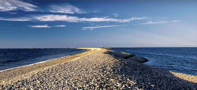 This furrow of multi-millennial pebbles (about 6000 years old) was formed according to weather and marine events. Reshaped at each tide, it is mobile and evolves by rolling on itself under the effect of the swell of an average of one meter per year towards the southeast.