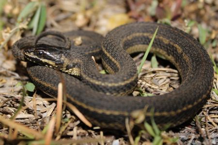 The Atlantic salt marsh snake is a slender, heavily keeled water snake about 2 feet in total length, with a pattern of stripes that are variously broken into blotches. The dorsal ground color is pale olive, patterned with a pair of dark brown stripes running down the back and enclosing a pale mid-dorsal stripe. These dark stripes usually become fragmented posteriorly into a series of elongate blotches. There is also a row of dark blotches along the lower sides of the body, which merge to form stripes in the neck region. The ventral surface is black with a median series of yellowish spots. This snake feeds on small fish in shallow water. It is most active at night, during periods of low tide.