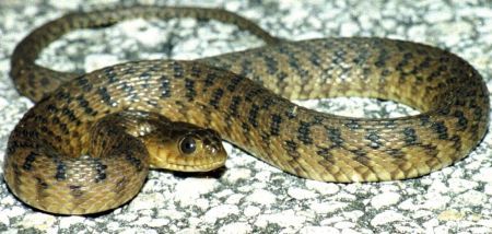 The Florida Green prefers weed-choked marshes, is less inclined to bask, and is somewhat more nocturnal than the Mississippi Green Water Snake. Despite its name, the green water snake is not always conspicuous green. The Florida green water snake is a heavy-bodied, olive-green, brownish, or reddish (in south Florida) water snake, with indistinct dark bars on its sides and back. The Florida Green Water Snake's head looks short and has a series of small scales that separate the eyes from the upper lip scales. This snake's belly is cream and unmarked. Feeding mainly on minnows and small fish, the green water snake often bites aggressively when first handled, and it also emits a nasty smelling musk.
