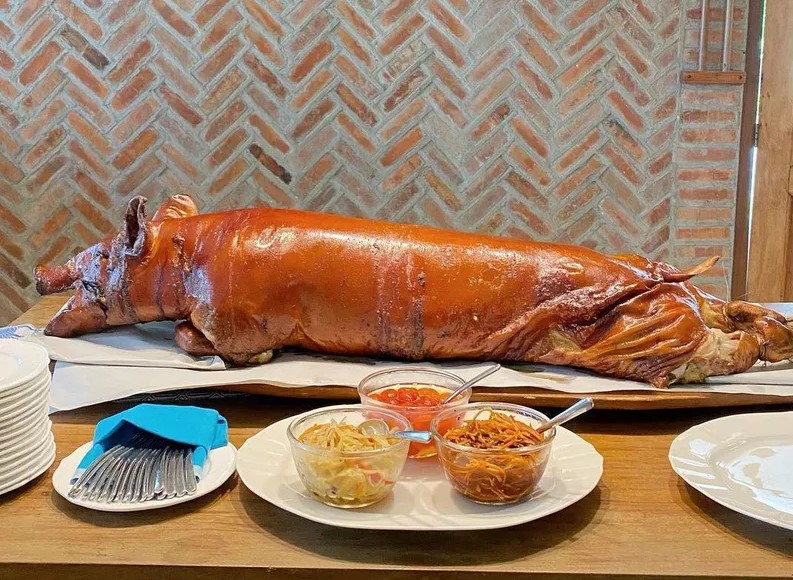 Look at the photo of the roast suckling pig dish from Puerto Rico above and answer the following.