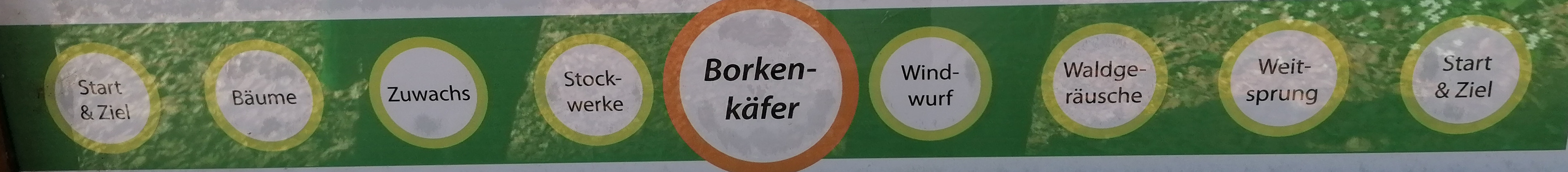 Die Wegstrecke, um diese fünf Stationen aufzusuchen, ist ungefähr 2 km lang und führt über befestigte Waldwege.