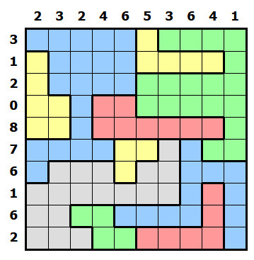 Pro lepší orientaci doporučuji si každou oblast slabě vybravit jinou barvou. Tentokrát to lze i při luštění online.