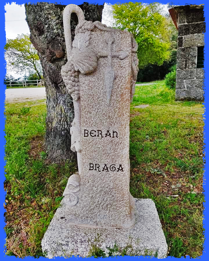 Este monumento foi erguido a 16 de Maio de 2021 na vila histórica de Berán, na provincia de Ourense, promovida por uma iniciativa sócio-cultural com o objetivo de assinalar o quilómetro 100 do caminho da Geira e dos Arrieiros e a homolgação pela Igreja deste itierário jacobeu que liga Braga a Santiago de Compostela.