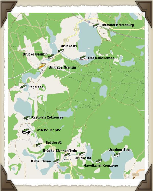einige Stationen sind aber auch vom Land aus zu erreichen. Bitte beachtet das ihr euch im "Müritz Nationalpark" befindet, bitte folgt nur den freigegebenen Wegen. Zelten ist im gesamten Gebiet untersagt, also bitte nur auf freigegebenen Zeltplätzen campieren.