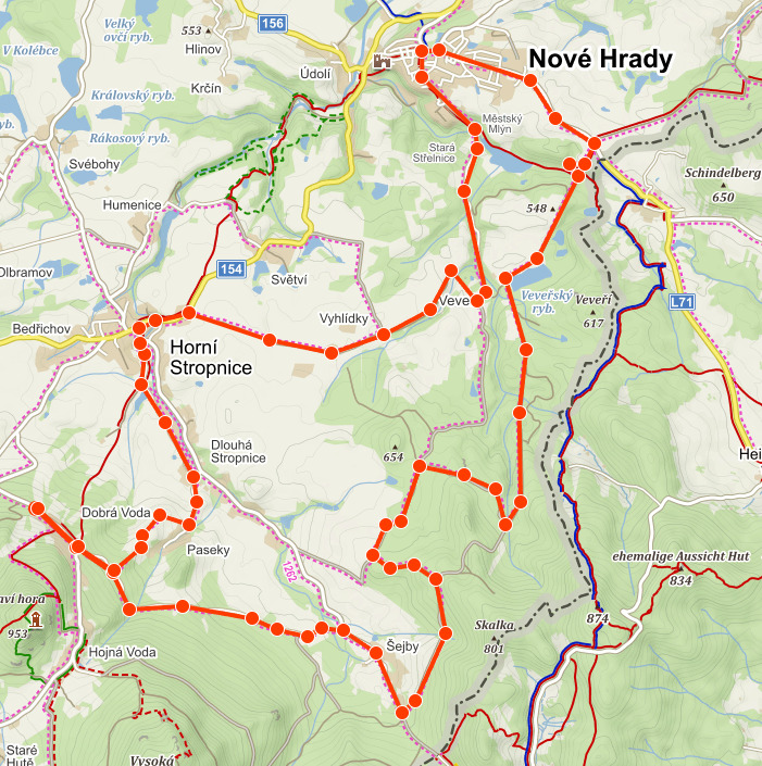 U kostela na Dobré Vodě. Půlhodinový event, během nějž doladíme formu, požadavky na úpravy trasy a seštelujeme naposledy kola a úderem deváté hodiny vyrážíme směrem na Šejby, podél hranic na Nové Hrady a přes Horní Stropnici zpět na Dobrou Vodu. Tedy samozřejmě kdo bude chtít, je to jen doprovodný program. Zpět bychom mohli být tak okolo 16 hodin.