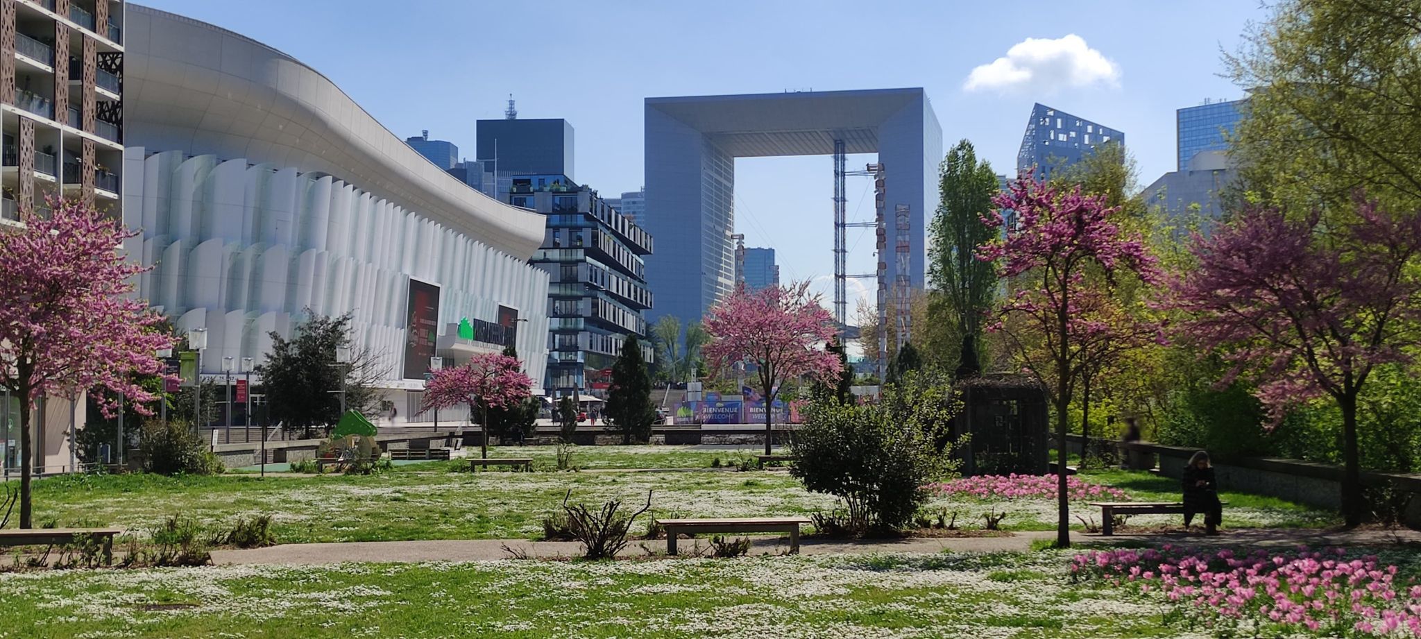 depuis La Défense (à l'est) jusqu'à la Seine (à l'ouest).