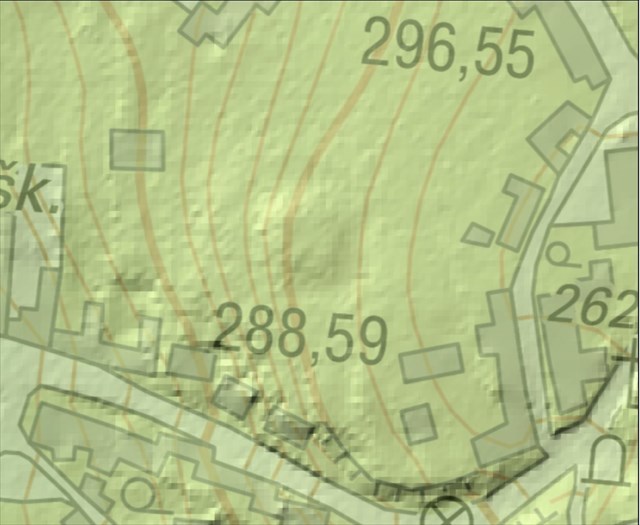 Reliéfní podoba kruhového tvrziště viditelná pomocí LIDAR