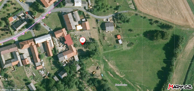 Satelitní záběr místa tvrziště