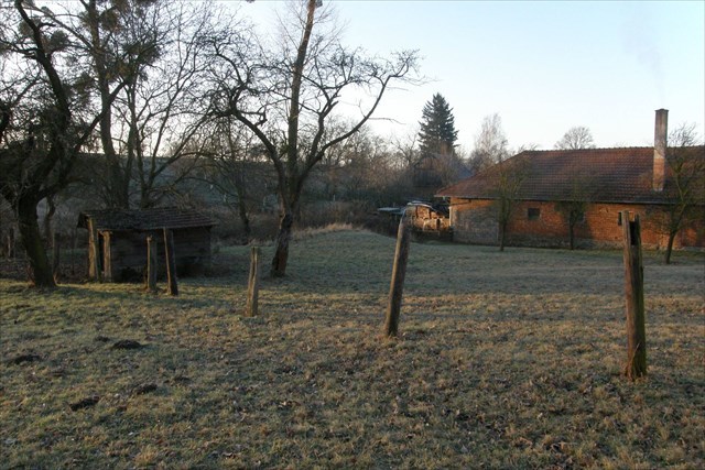 Celkový pohled od severovýchodu; dnes už v místě, odkud byl záběr pořízen, stojí rodinný dům