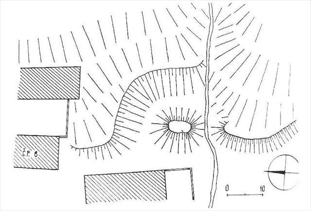 Nepatrný zbytek tvrze ze 14. století na zahradě domu čp. 8.
