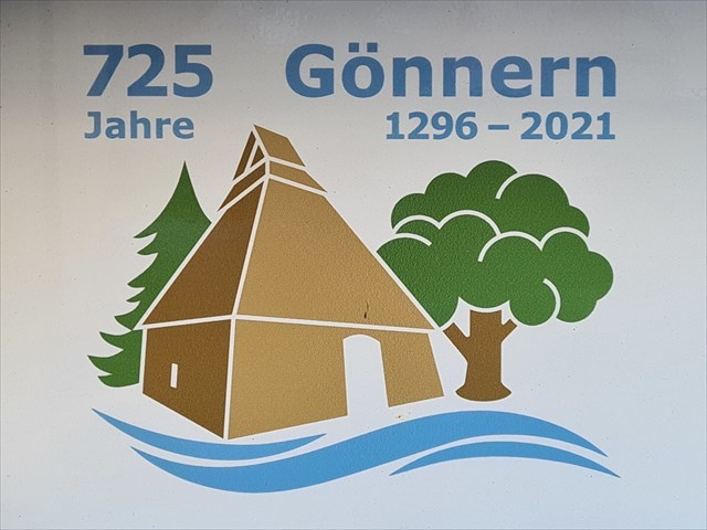 Es geht die Straße hinauf und an der nächsten Kreuzung erwartet uns schon die Markierung der Tour: das stilisierte historische Backhaus aus dem 18. Jahrhundert, eines der Wahrzeichen von Gönnern. Nach einem halben Kilometer Teerweg geht´s hinein in den Wald, hier ist auch der Treffpunkt der Runde und hier könnt ihr entscheiden ob ihr die Runde IM oder entgegen des Listings GEGEN den Uhrzeigersinn laufen möchtet.