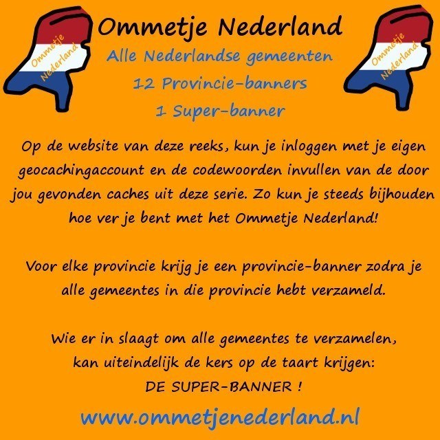 In elke gemeente van Nederland ligt een Ommetje Nederland cache,