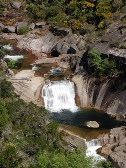 Não te preocupes. Depois de alguns arranhões e malabarismos chegarás à água, onde encontrarás, não outra lagoa e cascata, mas sim um local onde reinará a paz, no meio da natureza, água, rochas ...