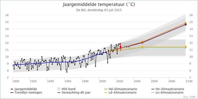 Above you can see the average annual temperature in De Bilt, which you can also find here. To the cachers the request to complete it .... So find the cache, log all fields in the log and share your experiences in your find log online.