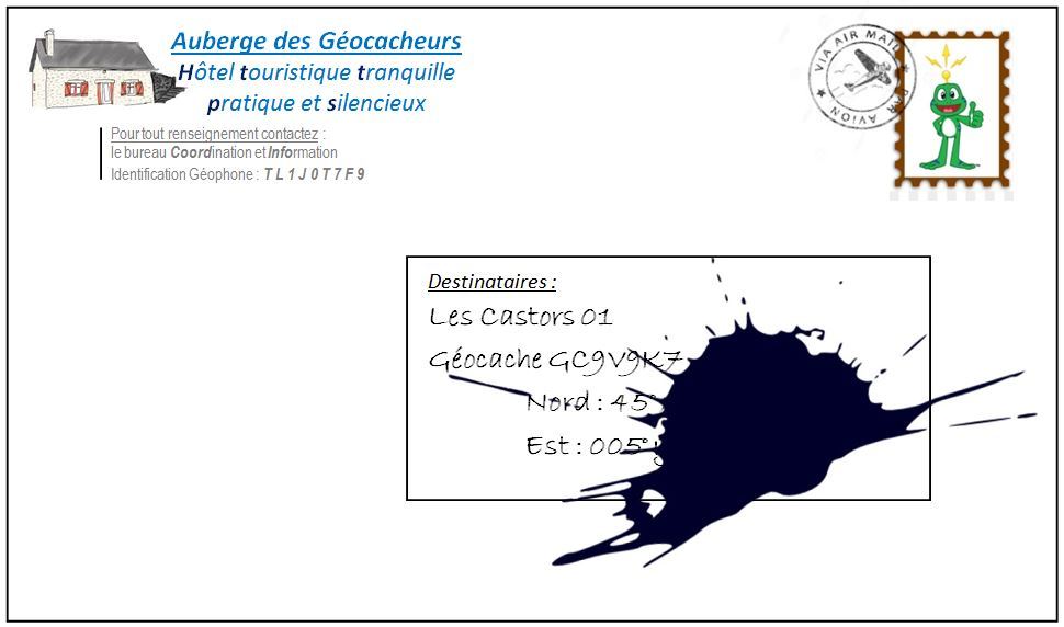 Zéphyrin, valeureux préposé du Géocaching-Express doit distribuer un "Found-iT" aux Castors 01. En pleine tournée, il s'aperçoit avec stupeur, que l'enveloppe contenant le "Found-iT" est tâchée, rendant impossible la distribution de ce courrier.