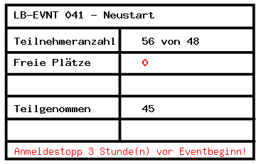 „Alle zum Eventzeitpunkt ggf. geltenden Maßnamen der Coronaschutzverordnung werden eingehalten und die genauen Maßnahmen werde ich, wenn nötig, ein paar Tage vorm Event per Announcement bekannt geben.“