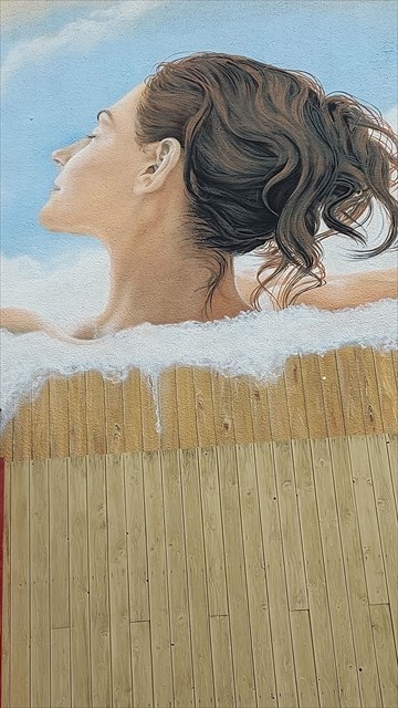 Findet "Die Badende" im Umkreis von 500 Metern von den Listingkoordinaten. Nun peilt vor Ort von dem quadratischen Gulli, der dem Bild am nächsten liegt: