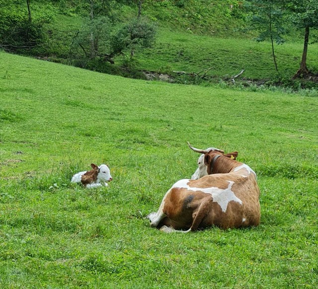 Von Süden kommend, den großen Schleierfall passiert, fließt der Schleierbach über die große Weide mIT RIndern und Jungtieren. Am Ende der Wiese beginnt der kleine Wasserfall. Für mich auch der Schönere der beiden.