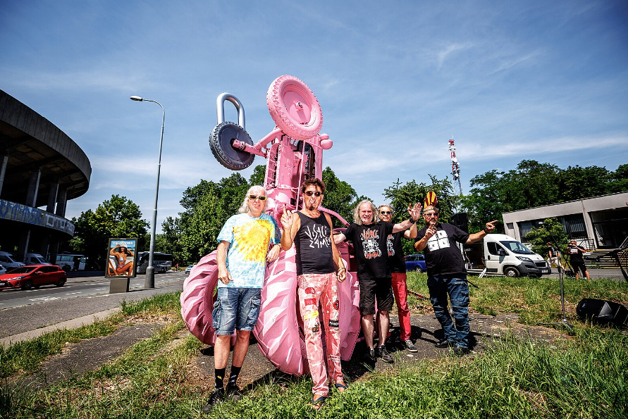Pomník je stvořen z traktoru Zetor 40, což odkazuje na snad největší hit kapely. Je postaven na zadní část a téměř celý natřený na růžovo a samozřejmě na něm nechybí zámek.