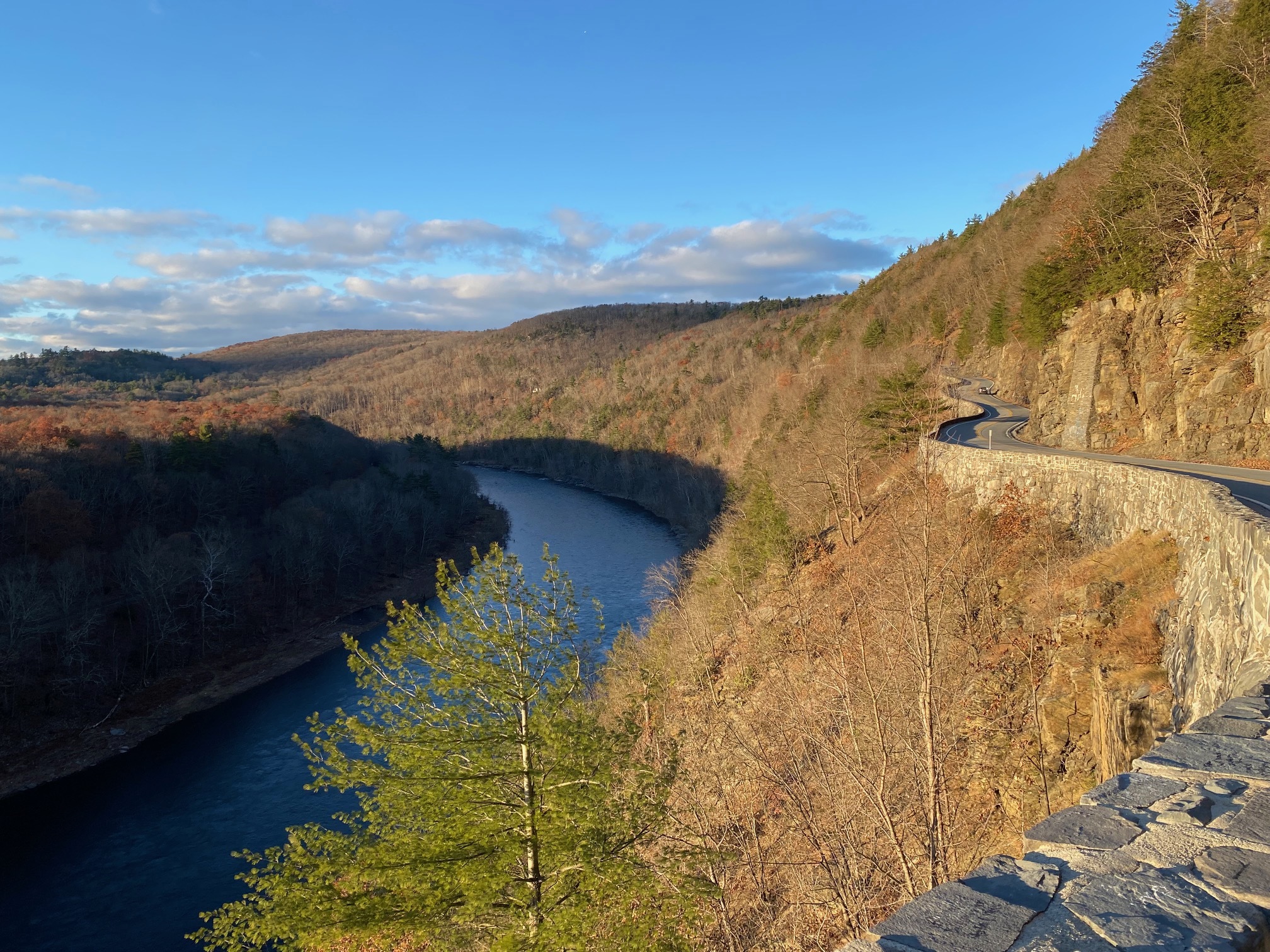 Hawks Nest is a scenic overlook located outside of Port Jervis, NY, approximately 300 feet above the Delaware River. It gets its name from the birds of prey that nest in the area. The area is well known for the winding road and is part of the Upper Delaware Scenic Byway.