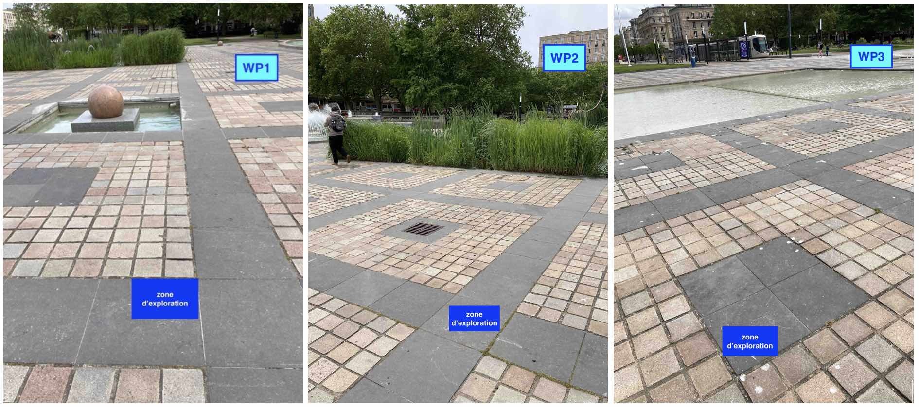 Voici les 3 zones Ă explorer. Sous chaque rectangle bleu, pouvez-vous me dire les numĂ©ros des WPs correspondant Ă :Â