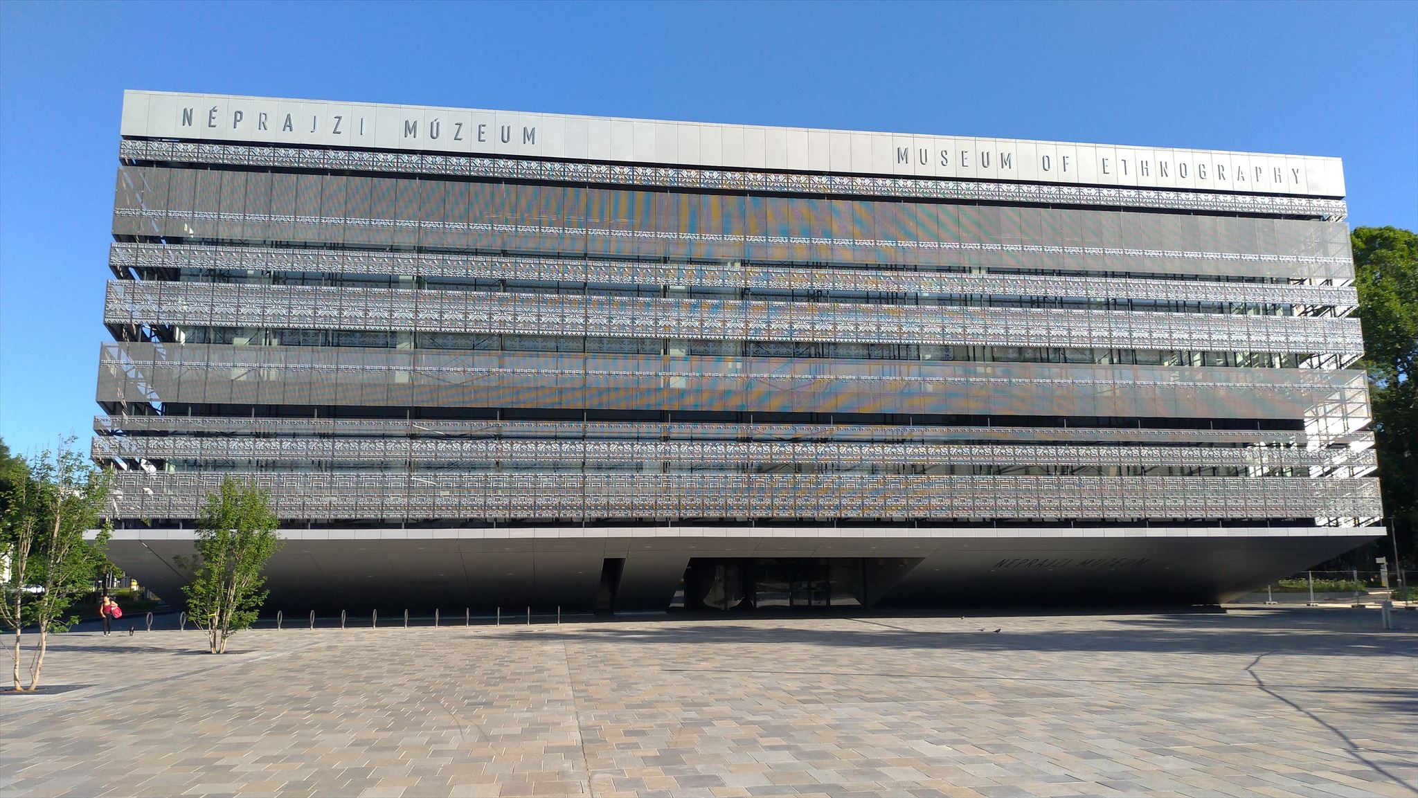 The new home of the Museum of Ethnography, realised as part of the Liget Budapest Project, opened its doors to the public on 23 May 2022 and welcomes visitors with its spectacular exhibitions. The building, designed by Marcel Ferencz (NAPUR Architect) is the first purpose-built facility with its concept tailored to the needs of an ethnographic museum. Now the City Park houses one of Europe’s most modern museum buildings, located on the site of the former Felvonulási Square, where a collection of unrivalled diversity is displayed on a floor space three times larger than in its previous venue on Kossuth Square. The spectacular building with its design evoking a pair of nearly embracing hillsides is distinguished by its unique facade decoration of almost half a million pixels presenting a contemporary adaptation of twenty Hungarian and twenty international ethnographic motifs, as well as by its more than seven-thousand-square-metre roof garden from the highest point of which a stunning panorama opens up. One of the most prestigious competitions of the international property business, the International Property Awards in London, the Museum of Ethnography was selected in 2018 as the world’s best public architecture based on its architectural design alone, and it was also recognised with the Best Architecture main prize.”