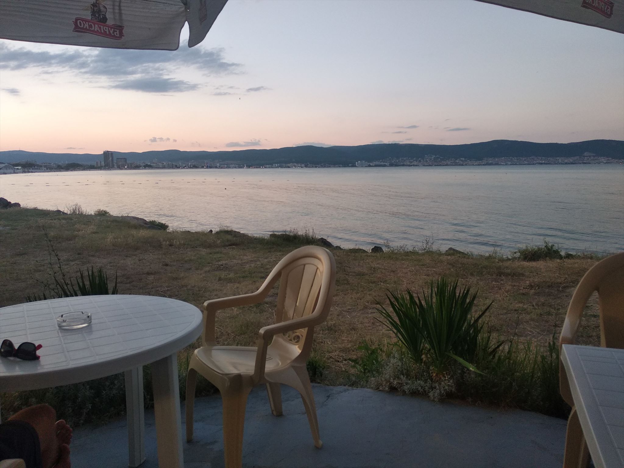 Kratke setkani (treba) u piva. Pokec o spolecnem konicku. Vyhlidka and vodou na kraji Slunecniho pobrezi/zacatku noveho Nesebru. Klasicka pobrezni hospudka