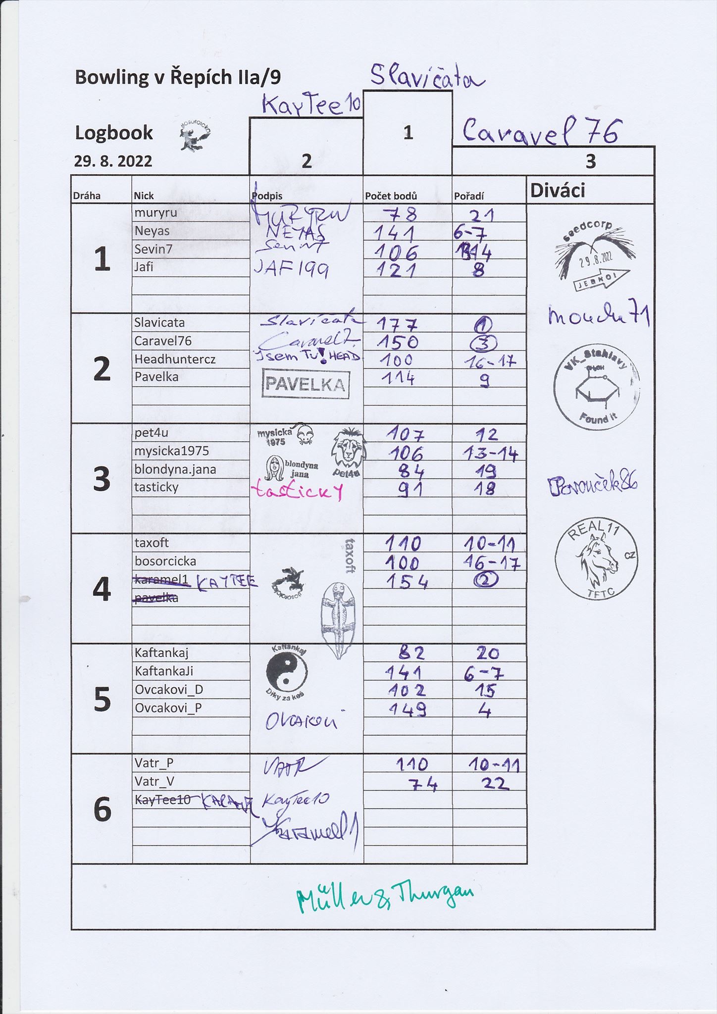 Bowling v Repich IIa/1, TB vyhral Caravel76 (182 bodu, draha 3)