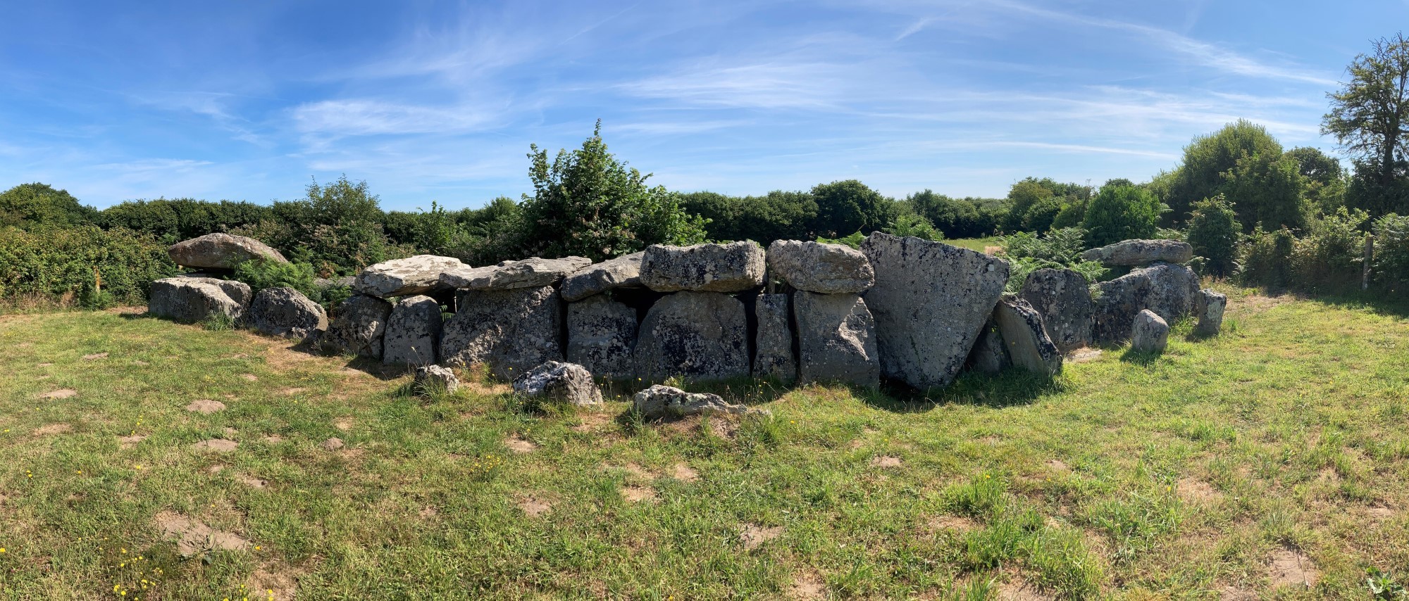 Ce monument long de 17m, large intérieurement de 1,10m et orienté sensiblement Nord-Sud, conserve la quasi-totalité de ses supports et peu de dalle des couvertures semblent manquantes. Il présente encore les vestiges d’un péristalithe, c’est-à-dire un entourage de petits blocs destiné à délimiter et à bloquer le tumulus qui le recouvrait autrefois. Cette structure devait conférer au monument l’aspect d’un tertre elliptique très allongé.