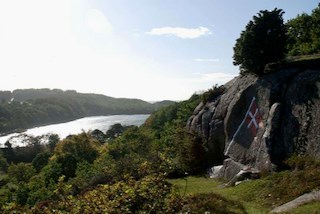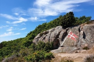 If you drive along Langebjergvej between Sandvig and Hammershus, you can see the danish national flag, Dannebrog, painted high up on the cliffs.