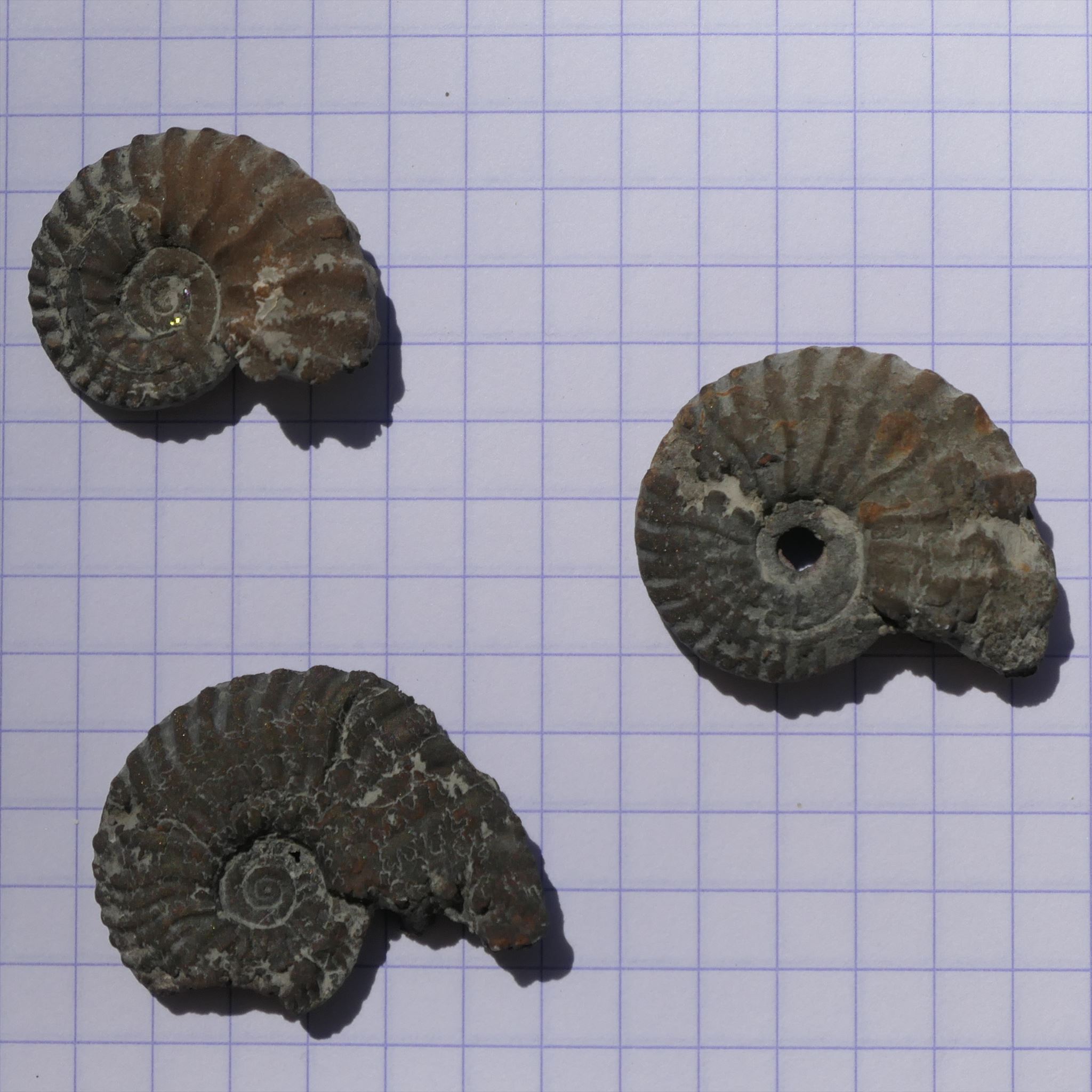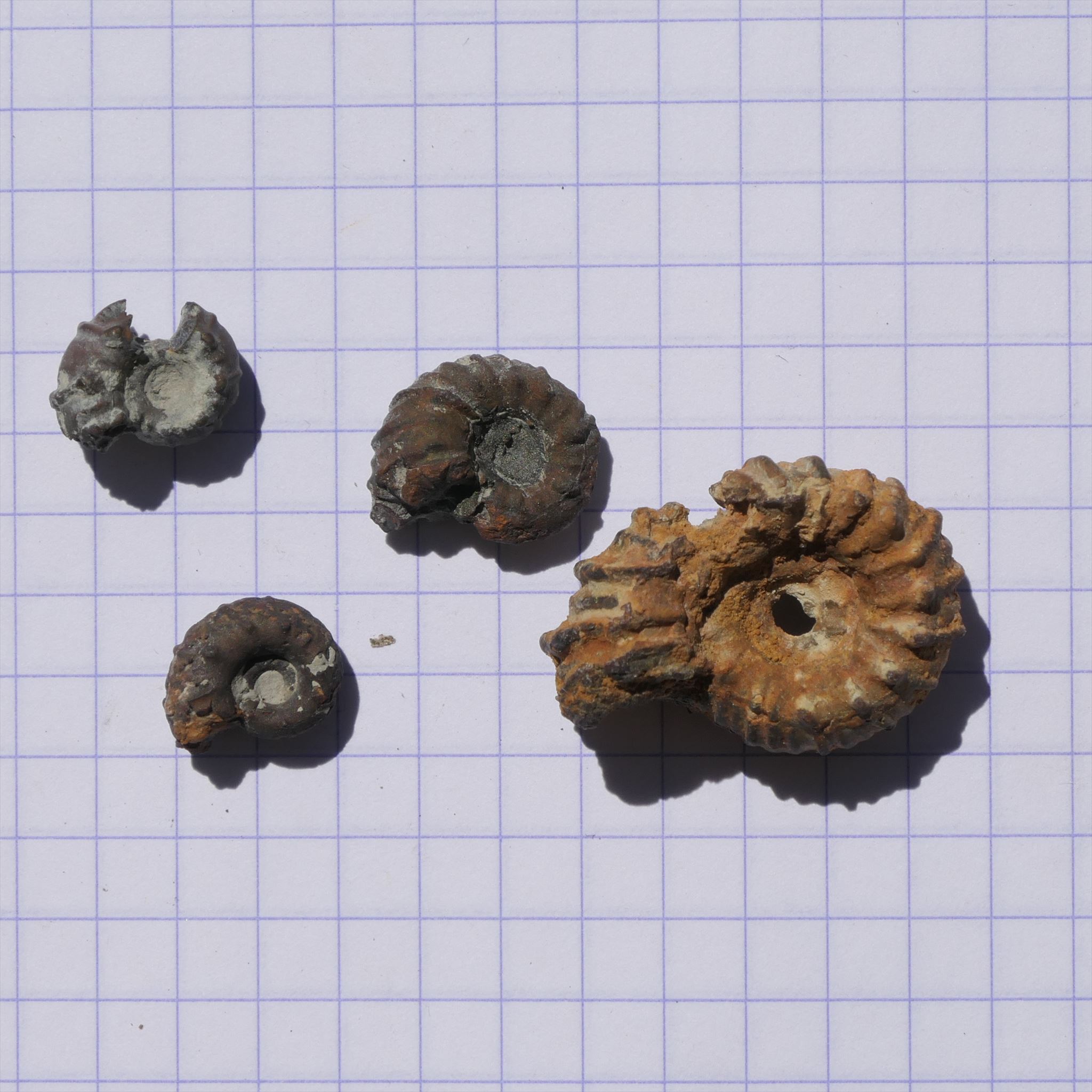 Ces argiles grises sont très fossilifères. On y trouve en abondance des mollusques : ammonites, des rostres de bélemnite, des gastéropodes, des bivalves mais aussi, des coraux, des oursins, des dents de requins… Les fossiles sont de petite taille, souvent pyritisés (la coquille est remplacée par de la pyrite : sulfure de fer). Ils s’oxydent et se détériorent facilement.