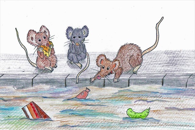 Irgendwo in einer Großstadtkanalisation schüttelte Rolf, die kleine Ratte, verzweifelt den Kopf. „Ne,ne,ne!“ Was bei seinem Bruder Steve und Nick, seinem besten Freund, für Fragezeichen in den Gesichtern sorgte. „Was ist los, Rolf? So kennen wir dich gar nicht. Du bist die letzten Tage schon irgendwie komisch drauf. Rück raus mit der Sprache“. „Schaut euch das an,“ erwiderte Rolf, weiter mit dem Kopf schüttelnd und mit der Pfote auf seinen Vetter Harald zeigend. Der lag, vollgefressen, alle Viere von sich gestreckt, am Kanalrand auf dem Pflaster und konnte sich keinen Millimeter mehr bewegen. Auch wenn das Gesicht eher zufrieden wirkte, konnte man ihm schon anmerken, dass ihm das letzte „Festmahl“ doch etwas schwer im Magen lag.