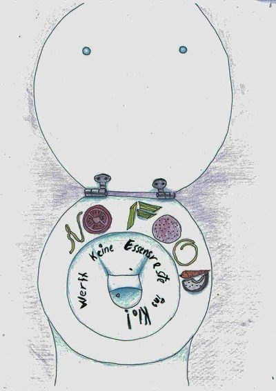 „Au man. Jetzt hört aber auf,“ fuhr in Rolf sauer an, streckte seine Pfote ins Abwasser und spritzte ihn mit einer großen Wasserladung nass. Schon war die schönste Keilerei im Gange, bei der letztendlich wieder mal keiner als klarer Sieger hervorging. Schon kurze Zeit später lagen alle drei völlig erschöpft in einem Zulauf zum Altwasserkanal und ließen die Füßchen ins Wasser baumeln. „Also mir gefällt das so,“ sagte Harald und kaute genüsslich auf dem zuvor geangelten Stück Kuchen. „Wenn du so weitermachst, siehst du bald genauso wie mein Vetter und unsere Familie aus. Dann wirst du schon sehen, was du davon hast. Ich mach bei dir keine erste Hilfe, wenn du mit Herzinfarkt im Abwasser liegst, das verspreche ich dir.“ Rolf erhob warnend seine rechte Pfote. Harald hörte augenblicklich auf zu kauen, verschluckte sich und spuckte die letzten Kuchenreste, die er im Maul hatte, wieder aus. „Was? Das kann passieren? Du machst mir Angst.“ Rolf zuckte die Rattenschultern. „Tja. Du kannst was dagegen tun.“ „Na, wir wollen ja mal nicht den Teufel an die Wand malen,“ sagte Steve. Aber Rolf hat schon recht. Das ist ja schon fast nicht mehr auszuhalten mit dieser Völlerei. Harald beförderte den Rest Kuchen mit beleidigter Miene zurück ins Wasser und schaute ihm schmachtend hinterher. „Und was sollen wir deiner Meinung nach tun,“ fragte er beleidigt? Rolf hatte natürlich schon eine Idee und sagte: „Wir müssen das Übel an der Wurzel anpacken.“ Und schon kurze Zeit später steckten die Drei ihre Köpfe zusammen und heckten einen Plan aus. Die nötigen Utensilien für ihren Plan,Pinsel und Farbe,waren schnell im Müll gefunden und schon begaben sich die Drei ans Werk. Wenige Tage später wunderten sich viele Menschen im Stadtteil der Drei, was in ihren Toiletten mit dicken Buchstaben auf dem Schüsselrand von innen geschrieben stand!