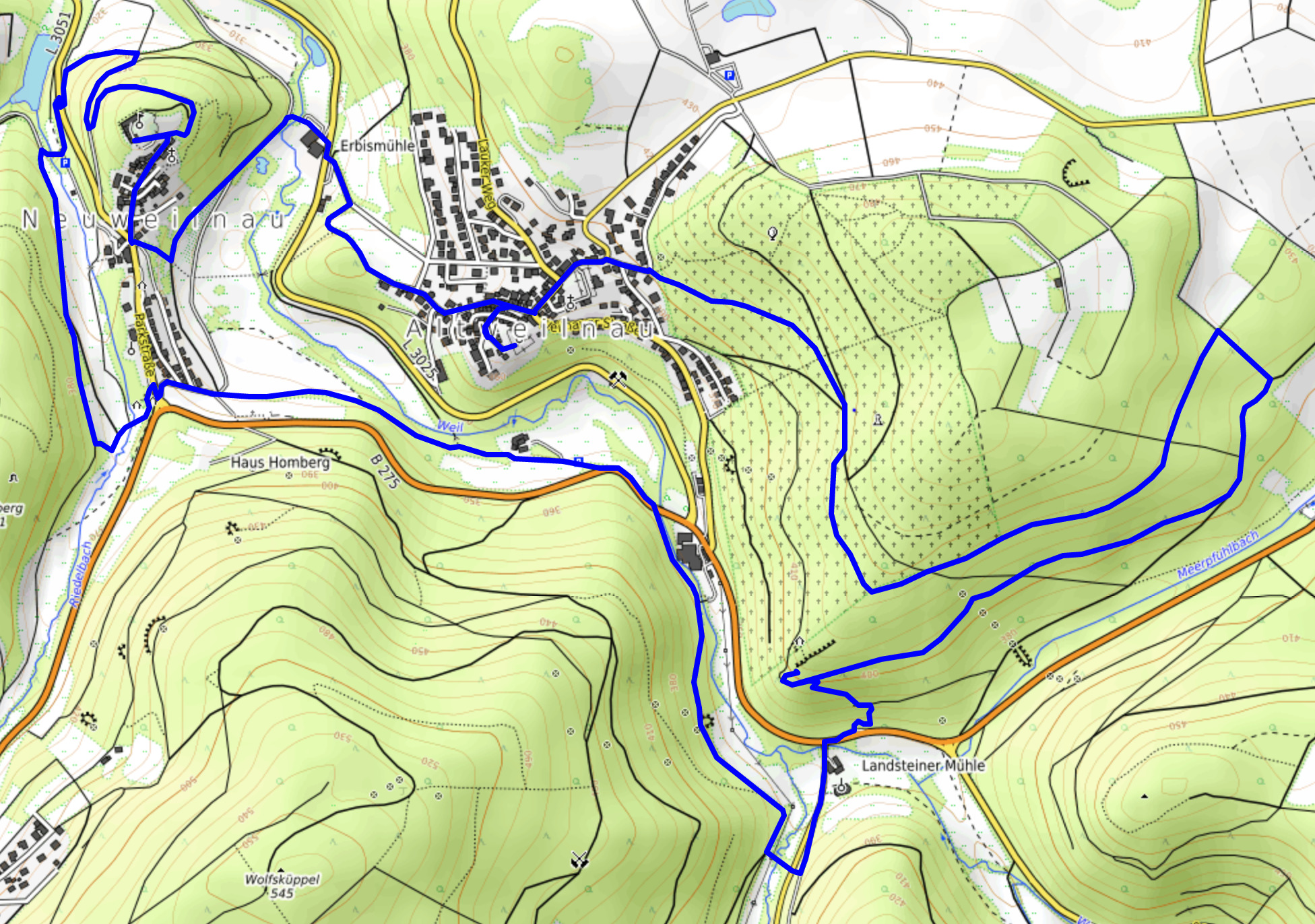 Dieser abwechslungsreiche Wanderweg führt von der Landsteiner Mühle vorbei am Campingplatz nach Altweilnau. Dort kommt man einem großen Picknickplatz vorbei und hat schon eine schöne Sicht auf das historische Neuweilnau. Danach geht es vorbei am Minigolfplatz, der 2023 wieder zu bespielen sein wird. Hier wird gerade fleißig saniert. Nun kommt ein kleiner Aufstieg zum Neuweilnauer Schloss. Dies kann man nur bei Veranstaltungen wie dem Kunsthandwerkermarkt von innen sehen, aber direkt nebendran ist ein sehr schöner Garten, der zum Verweilen einlädt. Nachdem man durch den alten historischen Dorfkern von Neuweilnau gelaufen ist, kann man sich noch bei Kaffee und Kuchen niederlassen, bevor es über die Felder am ehemaligen Sporthotel Erbismühle nach Altweilnau geht. Hier sind einige Plätze zum Ausruhen und Blicke schweifen lassen. Die alte Viehwaage von Altweilnau liegt auch auf dem Weg. Das Burggelände lädt zum Picknicken ein. Die grandiose Aussicht vom Burgturm darf man sich nicht entegehen lassen. (Öffnungszeiten siehe Wegpunkt - Im Winter nur nach Voranmeldung!) Danach geht es weiter durch Altweilnau in Richtung Friedwald vorbei an der alten Lore. Nun kommt ein längerer Waldabschnitt, der sich durch die ein oder andere Wegeskunst und den Bayrhoffer Brunnen auszeichnet. Zum Schluss dieses Weges kommt man zu den 100 Stufen, einer grandiosen Aussicht und einer alten Sagengestalt. Danach führen schöne Pfade zum Ausgangspunkt an der Landsteiner Mühle zurück.