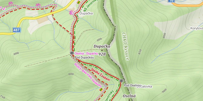 Přes jeho vrchol prochází česko-slovenská státní hranice, takže na jeho vrcholu najdete hraničník. Státní hranice pokračuje po hřebení, který tvoří Oselná, Kysučné a Lemešná. Na slovenské straně tohoto hřebene najdete také pramen řeky Kysuce. Za sedlem pod Lemešnou hřeben pokračuje hlavním hřebenem Javorníků s jeho nejvyšším vrcholem Velkým Javorníkem.