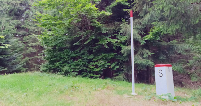 Keš je ukryta asi 7 metrů od hraničníku na jihozápad v geohrobě, který je mezi kořeny buku a smrčku. Jde o klasickou lockovku, do které se vejdou CWGčka, geocoiny, menší travel bugy a další drobnější předměty na výměnu.