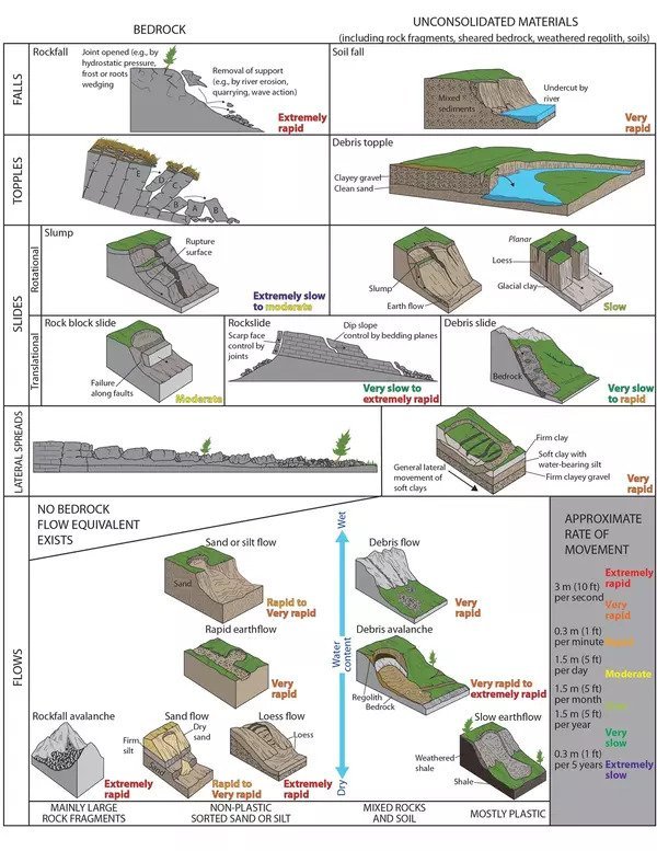 - Describe the slope visible in front of you. What form of mass wasting is most dominant here and what is the approximate rate of movement? Relatively speaking, would you say mass wasting occurs frequently here, or more sporadically?