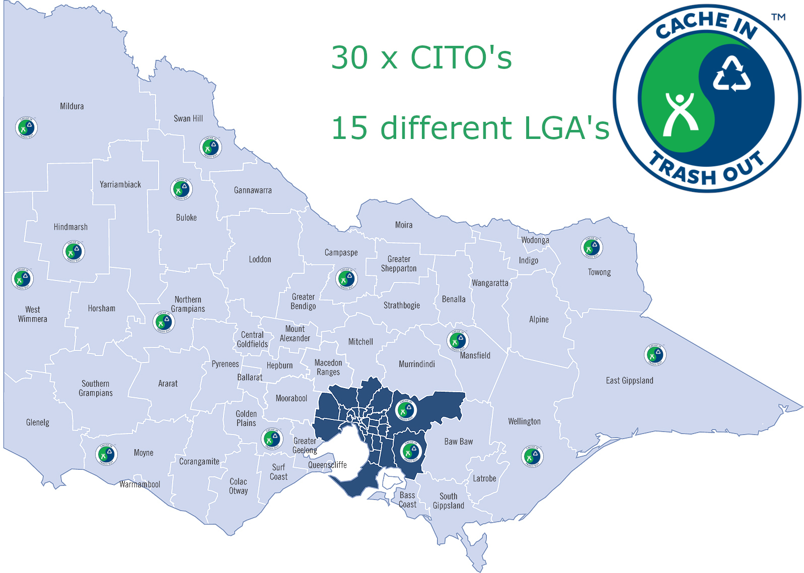 1. You must attend 30 CITO Events in at least 15 Victorian Local Government Areas (LGAs) on geocaching.com