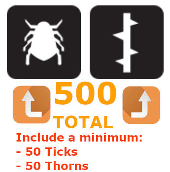 2. included in your 500 finds must be a minimum of 50 with the ticks attribute AND 50 with the thorns attribute