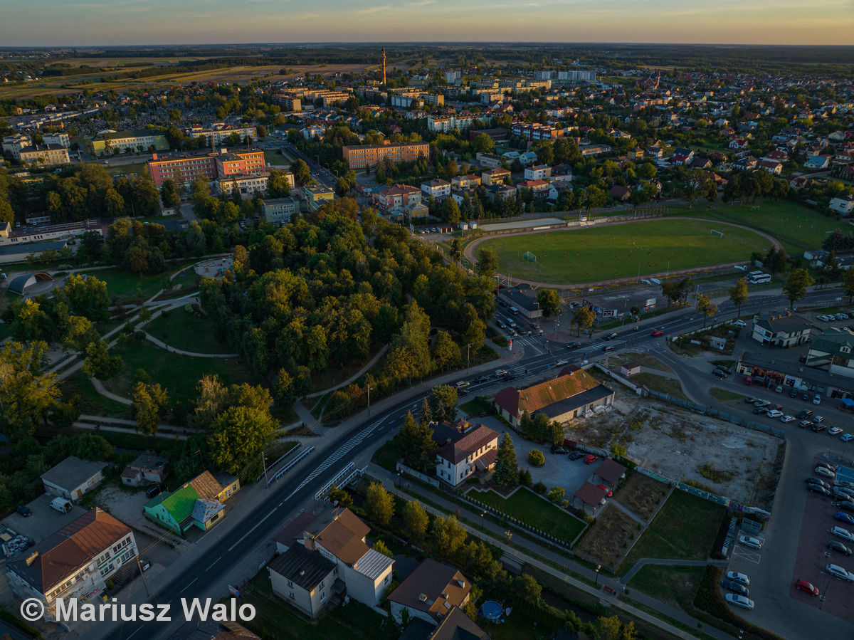 Łuków - widok z lotu ptaka (drona) - widok na park i stadion miejski. Fot. Mariusz Walo / Łuków - bird's eye view (drone) - view of the park and the city stadium. Photo Mariusz Walo