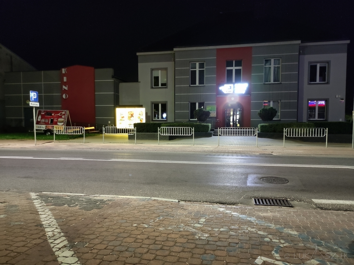 Łukowski Ośrodek kultury (ŁOK) nocą, zaraz obok kino. Fot. Zasoby własne / Cultural Center in Łuków (Łukowski Ośrodek Kultury - ŁOK) at night, next to it a cinema. Photo Own resources