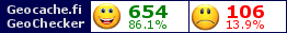 1 kätkö hajonnut ja kadonnut, 2 kätkö kadonnut.