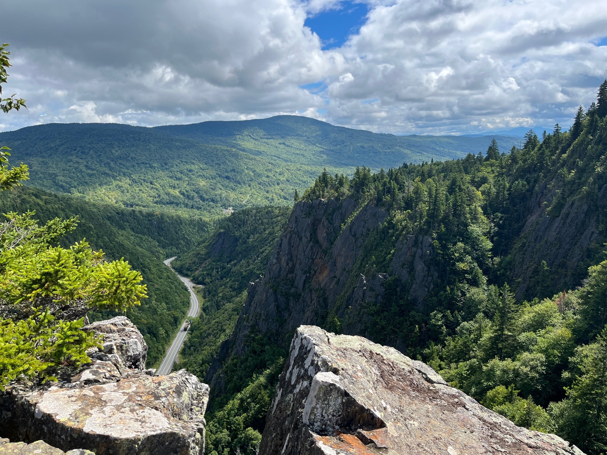 Table Rock is located within Dixville Notch State Park in the Great North Woods region of New Hampshire. The tiny community at the base of the notch is famous for gathering at midnight on primary day to cast the first ballots in the New Hampshire primary as well as the U.S. presidential election. The tradition started in the 1960 election, and all elligible voters gather at midnight in the ballroom of The Balsams. The voters cast their ballots and the polls are immediately closed once all the registered voters have voted, often within minutes and the results are immediately broadcasted around the country. The high rocky pinnacles which rise on the south side of Dixville Notch are like no other place in New Hampshire. It is a rugged and wild area on the side of Mt. Gloriette and the tallest of these crags is known as Table Rock.