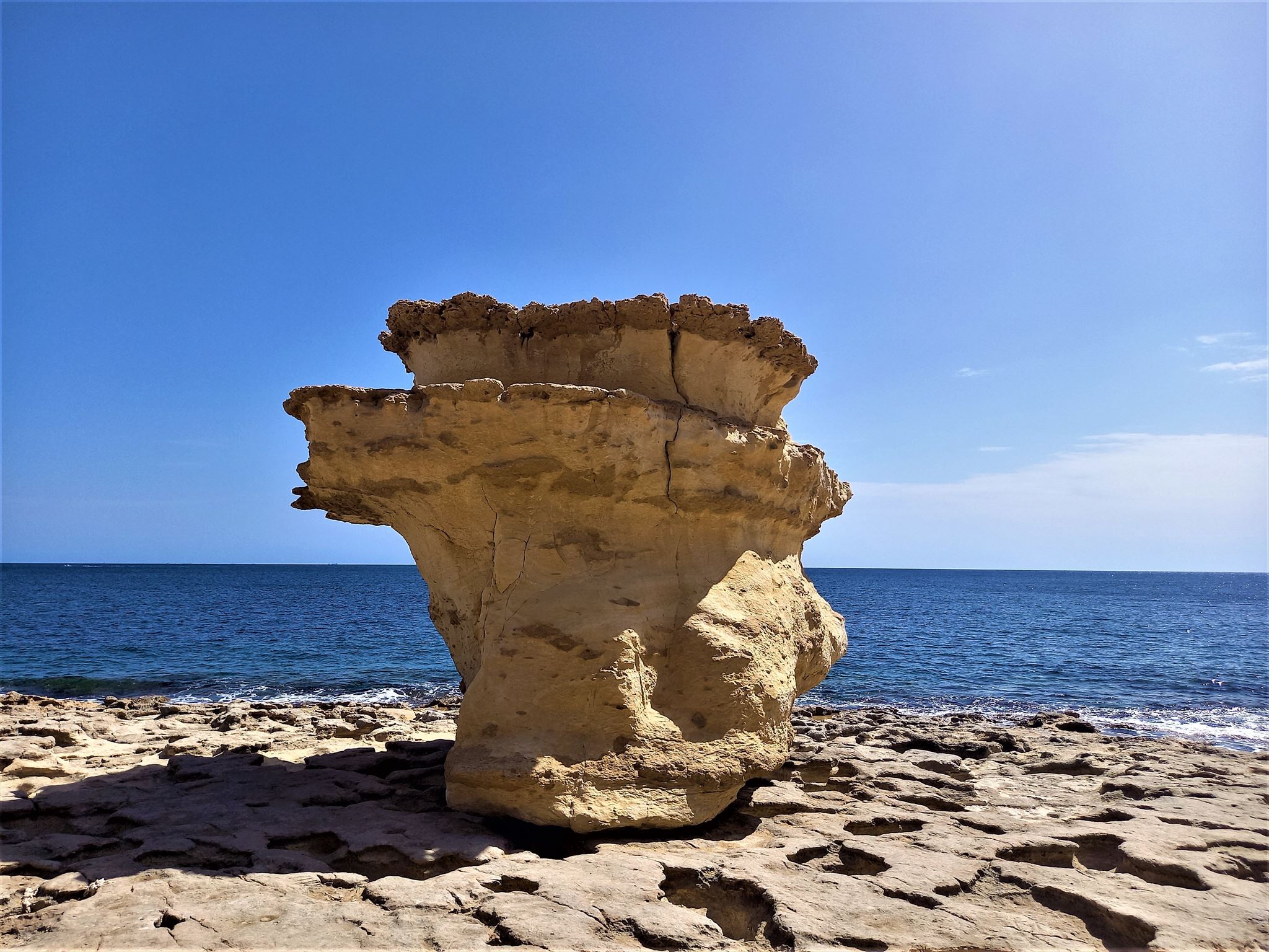 There are basically two colour of limestone: Yellow and White. Nature has carved in it amazing landforms, like rock arches, caverns, mushroom rocks and tafoni.