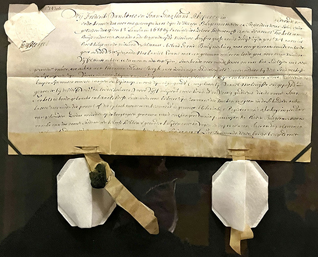 Het bij nummer 1 genoemde document werd overhandigd door een welbekende Graaf van Holland. Zijn naam is deels ook zichtbaar op het zegel van het document.
